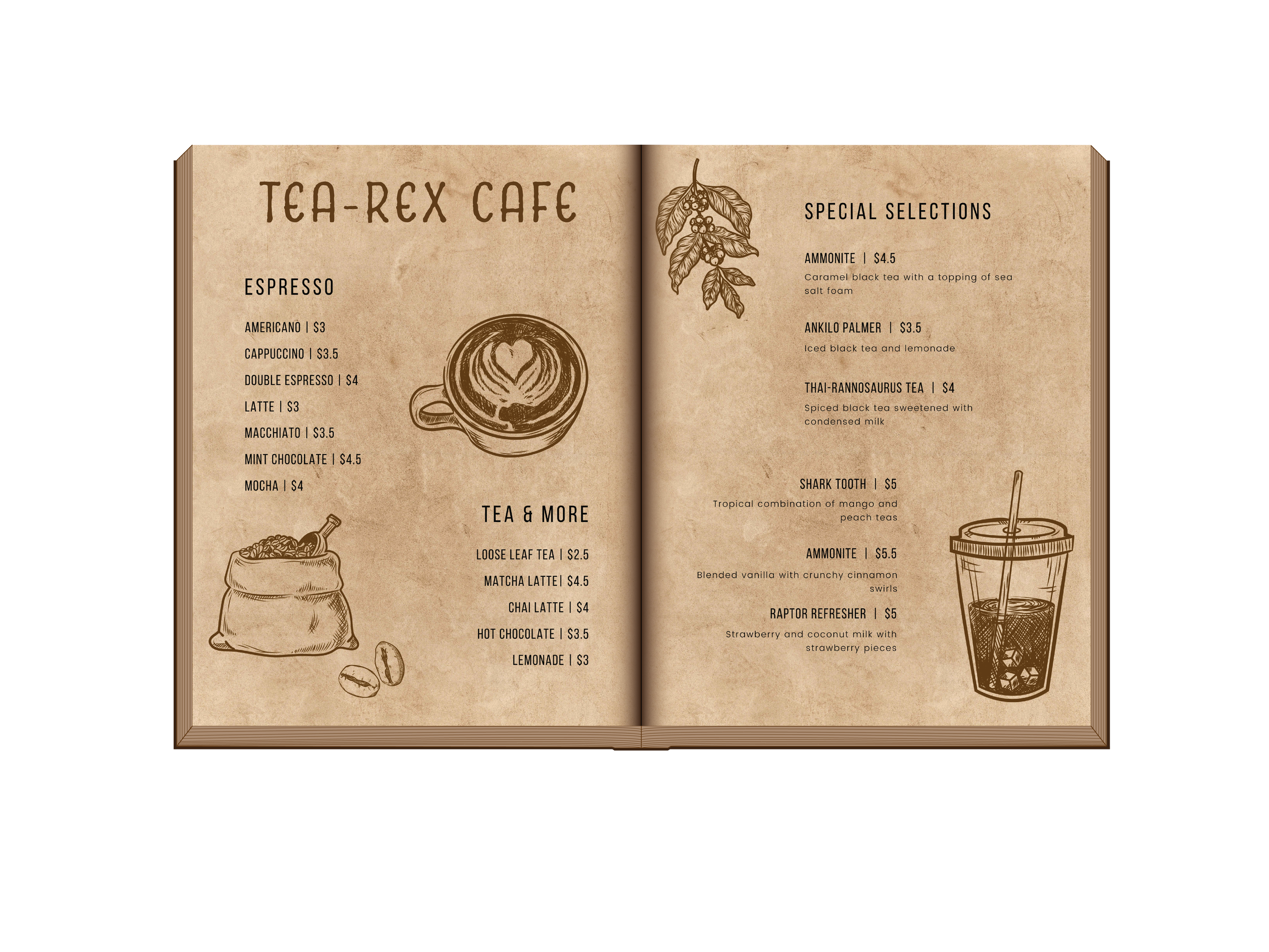 Travel stamps from well-known fossil locations around the world that Dr. Jones has working at during his career. These graphics are overlaid on the walls of the cafe.
